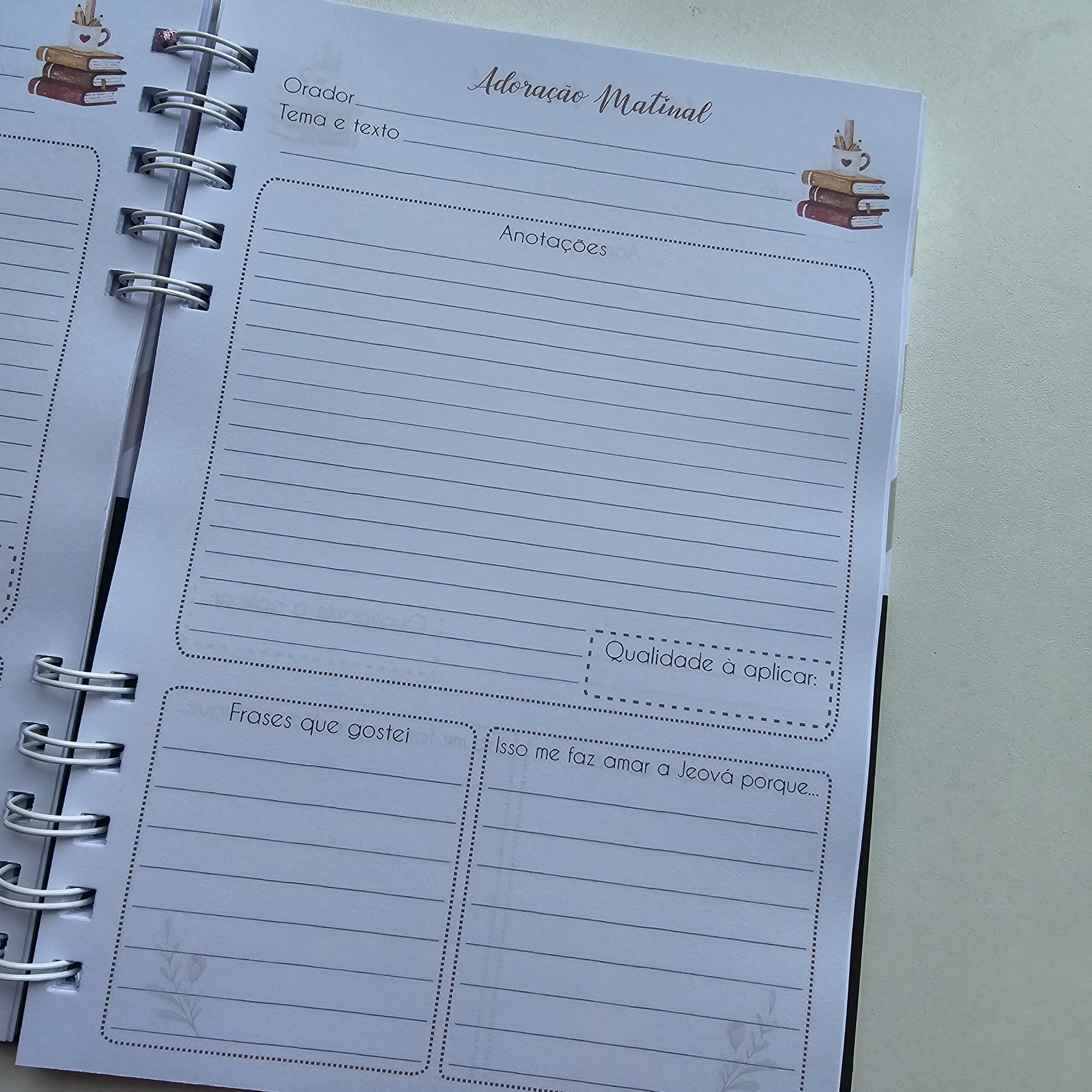 Um lugar especial para anotar os pontos principais das Adorações Matinais.