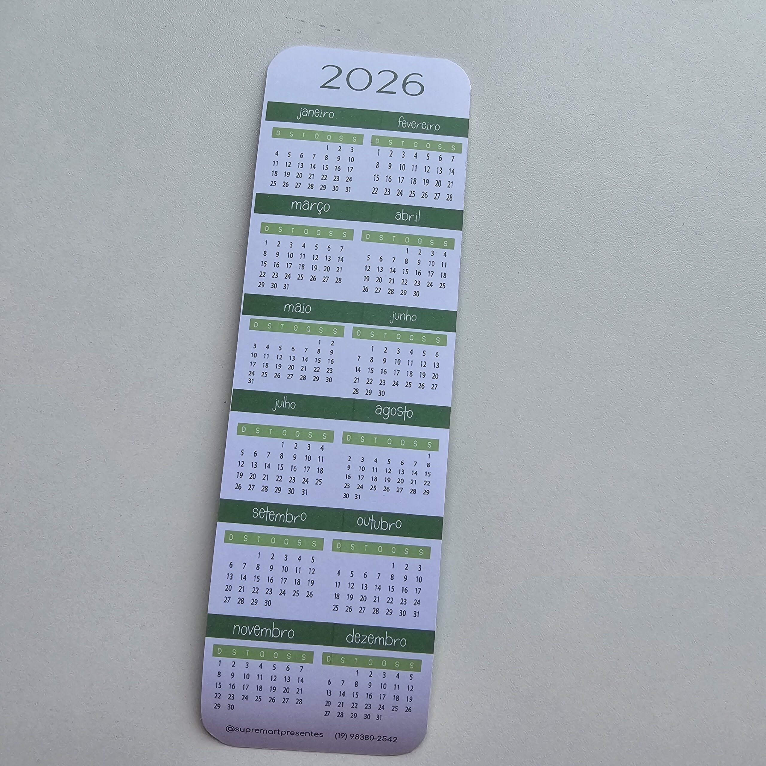 Calendário Marca Páginas